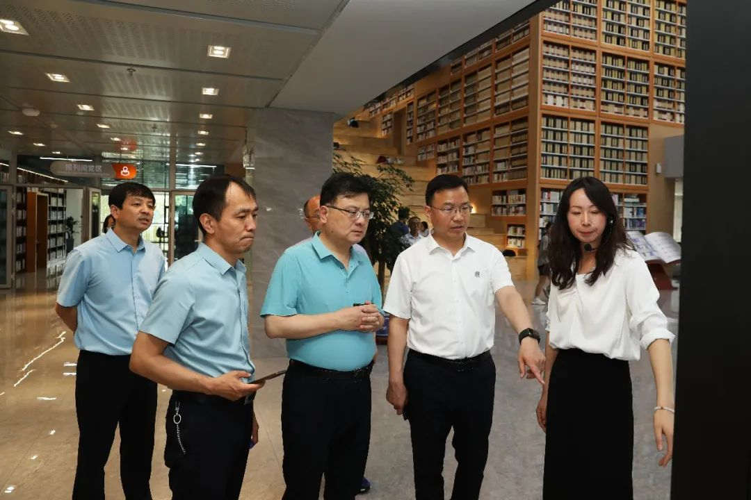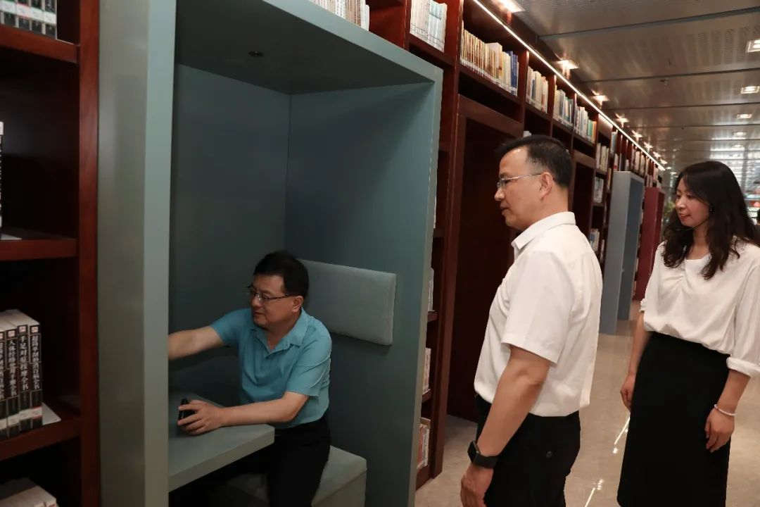 座谈会后,调研组一行实地参观了我校1946广场、新图书馆和信息网络中心。在1946广场,王金胜介绍了我校老校长何穆博士的生平事迹和我校的校训精神。在新图书馆,调研组一行重点参观了我校主题教育读书专区、多媒体视听室、教学研讨室等场所,详细了解了图书馆图书借阅、期刊展览、座位及教学研讨室预约等情况,并对我校新图书馆的数字化资源建设和硬件建设工作给予高度评价。在信息网络中心,调研组一行参观了信息网络中心机房监控室、大数据研究中心,详细了解了山西省智能数据辅助诊疗工程研究中心组织架构及研发团队组成人员,对我校在搭建高水平科研平台和凝聚科研队伍等方面工作给予充分肯定。