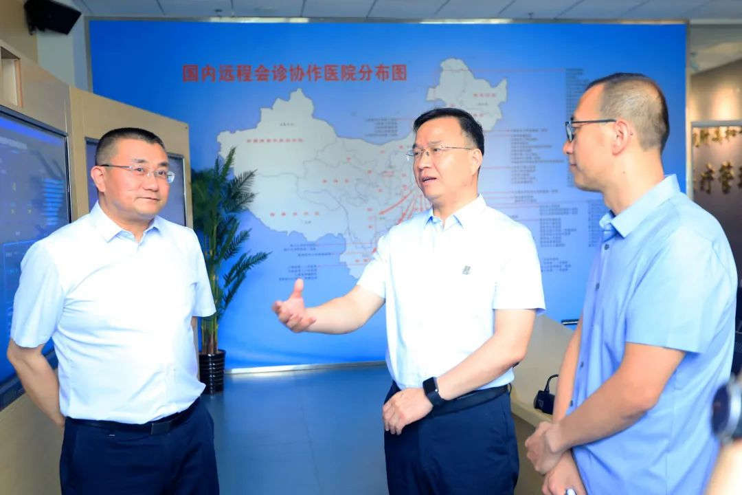 王金胜听取汇报后,指出要结合工作实际,积极总结“互联网医疗+第一村医”工作此前取得的有益经验,创新思路,优化机制,不断把这项为农助农的实事好事,办实办细办到老百姓心坎上,并借此引申主题教育不断走深走实。一是要争取省卫健委的支持,成立第一村医领导组,并设立专门办公室,争取政策与经费的保障,召开全省范围内第一村医与互联网医疗相融合的现场会,对取得的成熟经验与有益做法进行宣传推广;二是对通过互联网初诊需要到附属和平医院实地就诊的患者开通绿色通道,制定专项服务流程,为患者打造“不一样”的就医环境,吸引更多的患者通过互联网就诊;三是在互联网医疗工作的推进过程中,要畅通双向转诊渠道,与县区相关单位多沟通,打消他们对于分级诊疗的顾虑;四是要将“千名医生下基层”与“第一村医”工作结合起来,让更多的老百姓享受到优质医疗资源,提升基层群众的健康体验感、获得感和幸福感。他还就化解工作中出现的“难点”“堵点”问题给出了指导性意见。