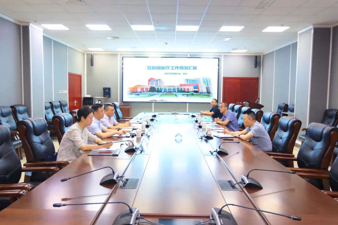 6月16日上午,党委副书记、校长王金胜深入附属和平医院就第一村医与互联网医疗工作进行专题调研,医院管理处处长张文平陪同,附属和平医院副院长王龙及相关部门负责人参加。附属和平医院互联网医疗部主任赵琥就互联网医疗工作的情况作了专题汇报。他指出,目前和平远程医疗协作网已覆盖9个区县、484个行政村,走在了长治市各医院的前列。