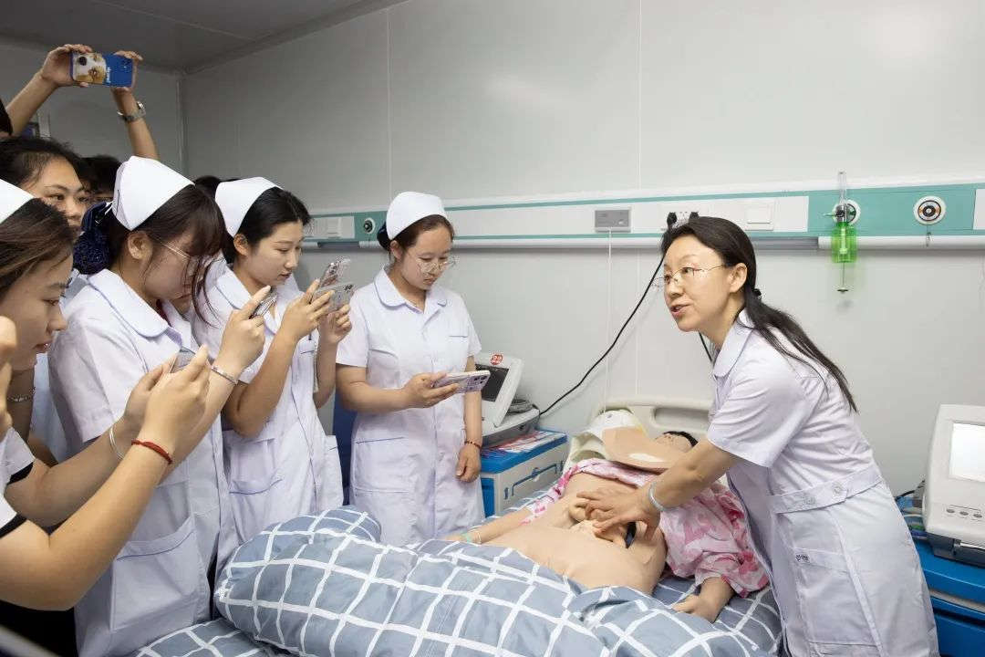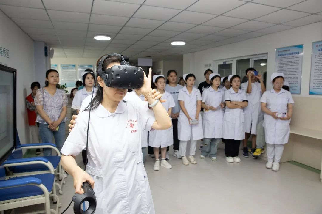五校青年师生在我校临床技能中心二层模拟医院先后参观学习了模拟病房、待产室、分娩室、新生儿ICU、手术室。护理学系副主任陈爱香围绕“生命的起源”为主题,深入浅出地讲解了生命的诞生与意义。师生们通过虚拟仿真系统,以VR沉浸式教学方式在三维虚拟场景中走访模拟医院。通过聆听讲解,认识和了解了高新设施设备,见到了模拟“标准化病人”,并与“标准化病人”进行了人文交流。