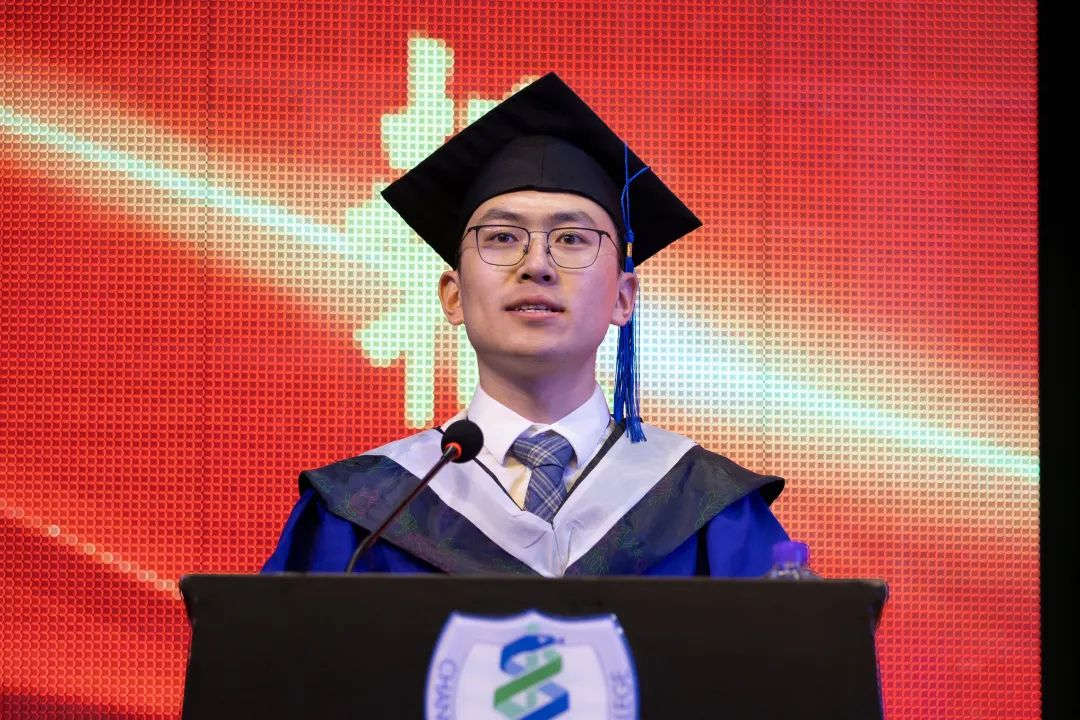 2023届硕士研究生代表、研2004班乔晋晟同学发言,他代表2023届临床医学硕士毕业生,向母校表达了最衷心的感谢与最崇高的敬意,回顾在校的时光,不仅带给了他们广博的学识,更重要的是培养了他们严谨的治学态度和仁厚的品德修养,这将是终生受用的宝贵财富。毕业后,他们必将肩负起医者重任,在医学领域继续学习和探索,以温暖和爱心,治愈更多患者。必将秉持对医学的敬畏与好奇,在科研实践中磨炼品格,在临床实践中感悟生命,成为一个有理想、有情怀、有本领、有敬畏、有担当、接地气、有温度的医者,在未来的天空锐意翱翔,用激情和勤奋实现人生的理想,用成长和成才继续述说长医人的精彩。
