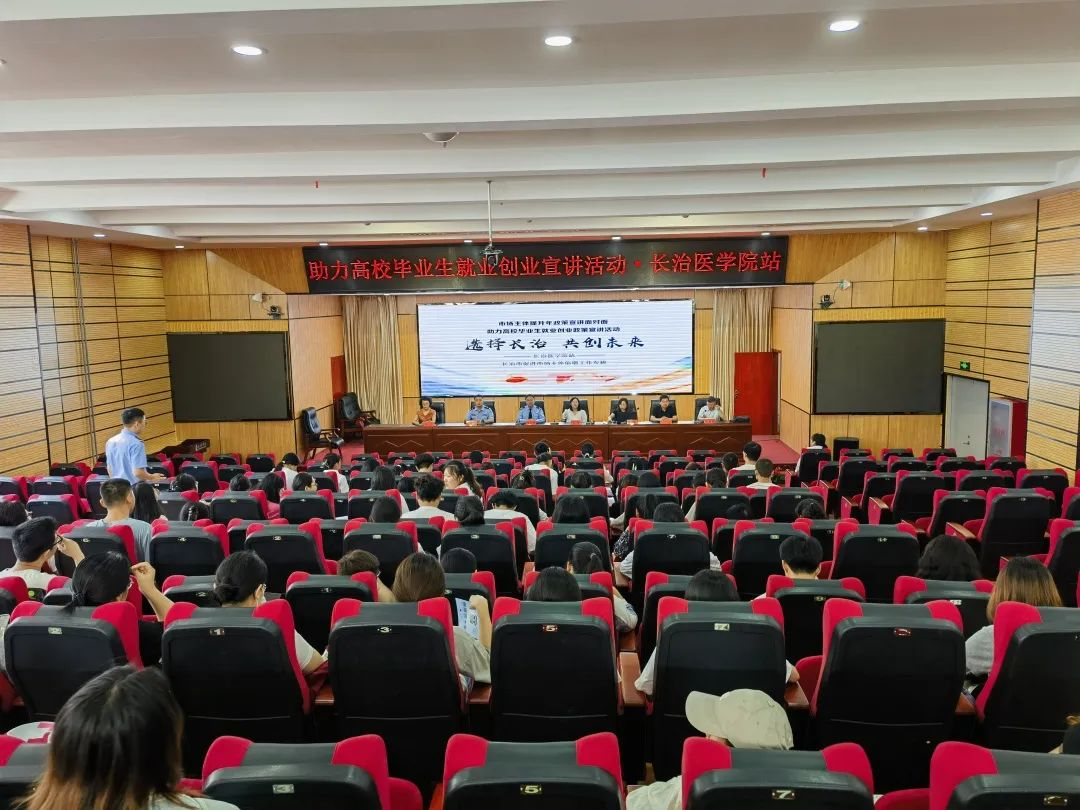 6月26日,长治市促进市场主体倍增工作专班选派行政审批、人社、税务、金融、公安等部门业务骨干走进我校开展高校毕业生就业创业政策集中宣讲。招就处处长杜海利主持宣讲会,我校毕业班辅导员及学生代表等200余人参会。
