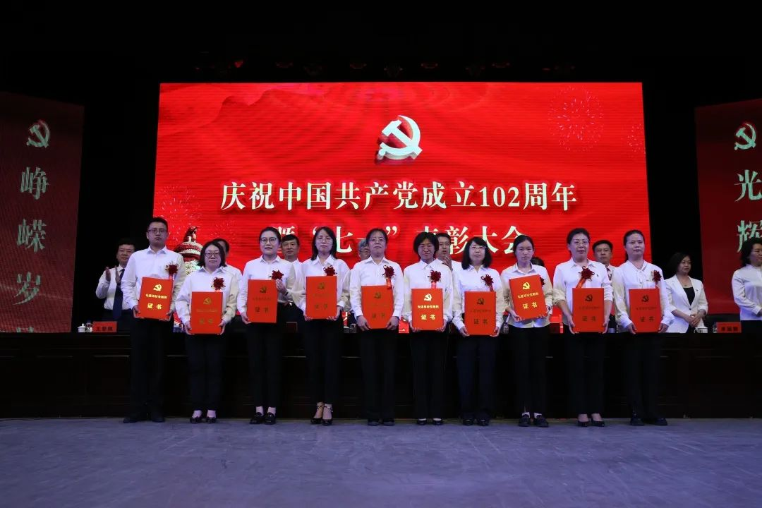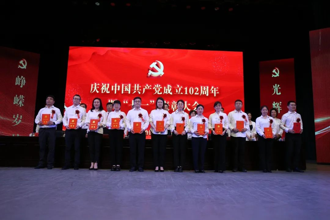 校领导班子成员及党委常委为优秀共产党员、优秀党务工作者代表和先进基层党组织代表颁发荣誉证书并合影留念。