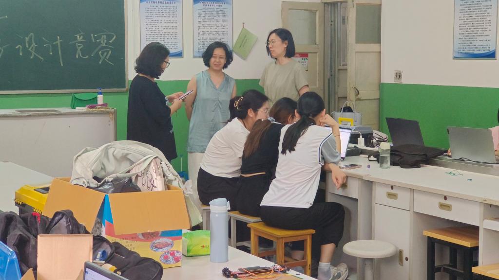此次竞赛同学们充分结合理论知识与实践创新能力,将电子设计灵感转化为实际应用方案。期间,来丽娜副校长专程到达比赛现场,看望参赛的师生,给同学们加油鼓劲。