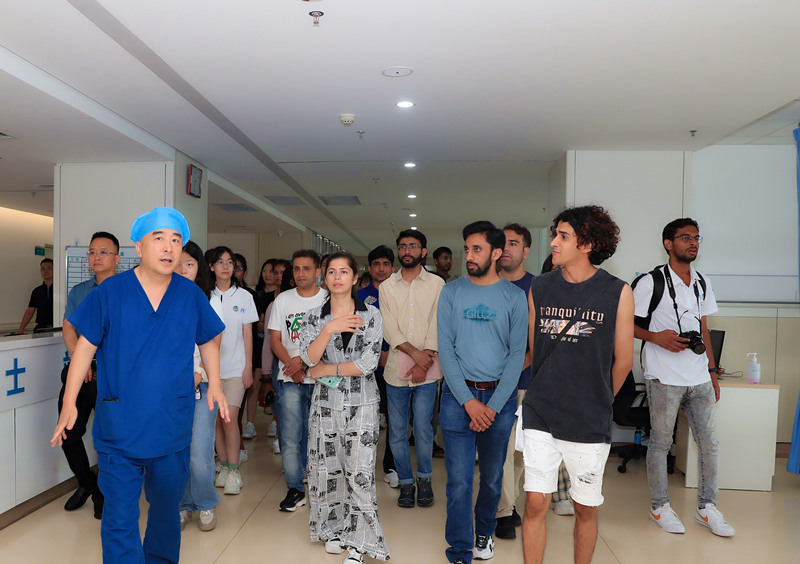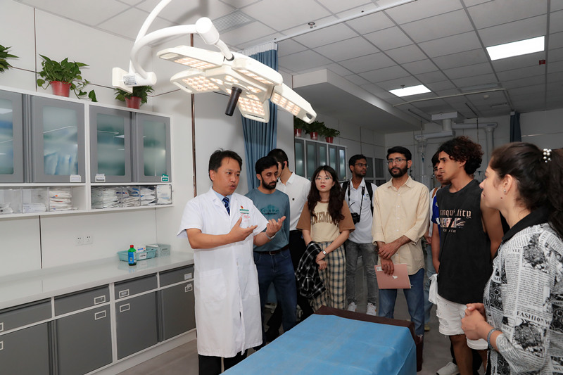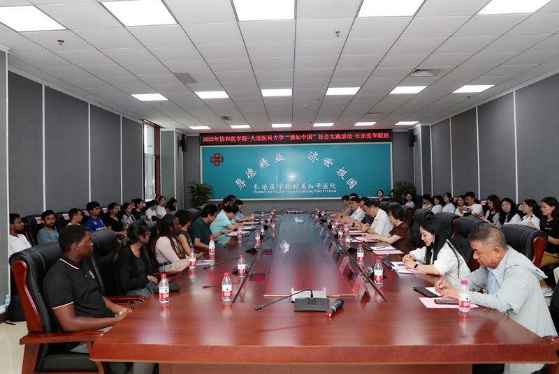 本次活动由北京协和医学院乔友林教授及大连国际教育学院院长郭艳秋带队,共20余名中外学生参加,其中包括来自巴基斯坦、斯里兰卡等7个国家的14名留学生。长治医学院党委副书记、校长王金胜教授,原党委副书记冯向先教授,医学教育研究处处长李志芳教授,国际合作与交流处处长王素敏,附属和平医院党委副书记、院长李红倬,党委副书记王玉芬,副院长王龙及相关重点科室主任陪同参观,并参加了座谈。