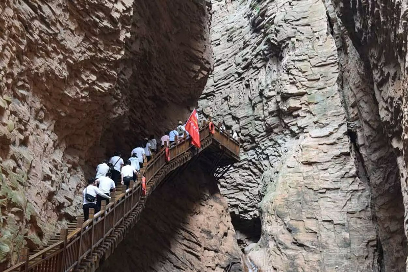 生态调研,推广绿色发展理念。“绿水青山就是金山银山”。为更好宣传绿色发展理念、普及环保知识、坚定文化自信,促进团成员走进西村田间地头围绕美丽乡村建设与村民进行了深入交流,并沉浸式体验农事农活。促进团成员还沿途而上,“奇遇”悬崖山峰、叠嶂、岩洞、瀑布、山泉,深刻体会到了黄崖洞是集太行壮美风光、嶂石岩地质奇观、红色军工文化、抗战史迹遗址于一体的“红绿融合”新标杆。成员们还在李显忠书记的带领下,走进了宽嶂山,遇到了一位刚刚采药回来的老伯,他向成员们介绍起了宽嶂山里的基本情况:“我们这里生态很好,山上的药材超200种,以青翘、连翘为主,现在正是采收青翘的时候,这可是我们的一个重要收入来源。”经过生态调研,促进团成员纷纷表示,要坚持以习近平生态文明思想为指导,秉持实践出真知的理念,在基层生态文明建设和乡村振兴中贡献自己的青春力量。