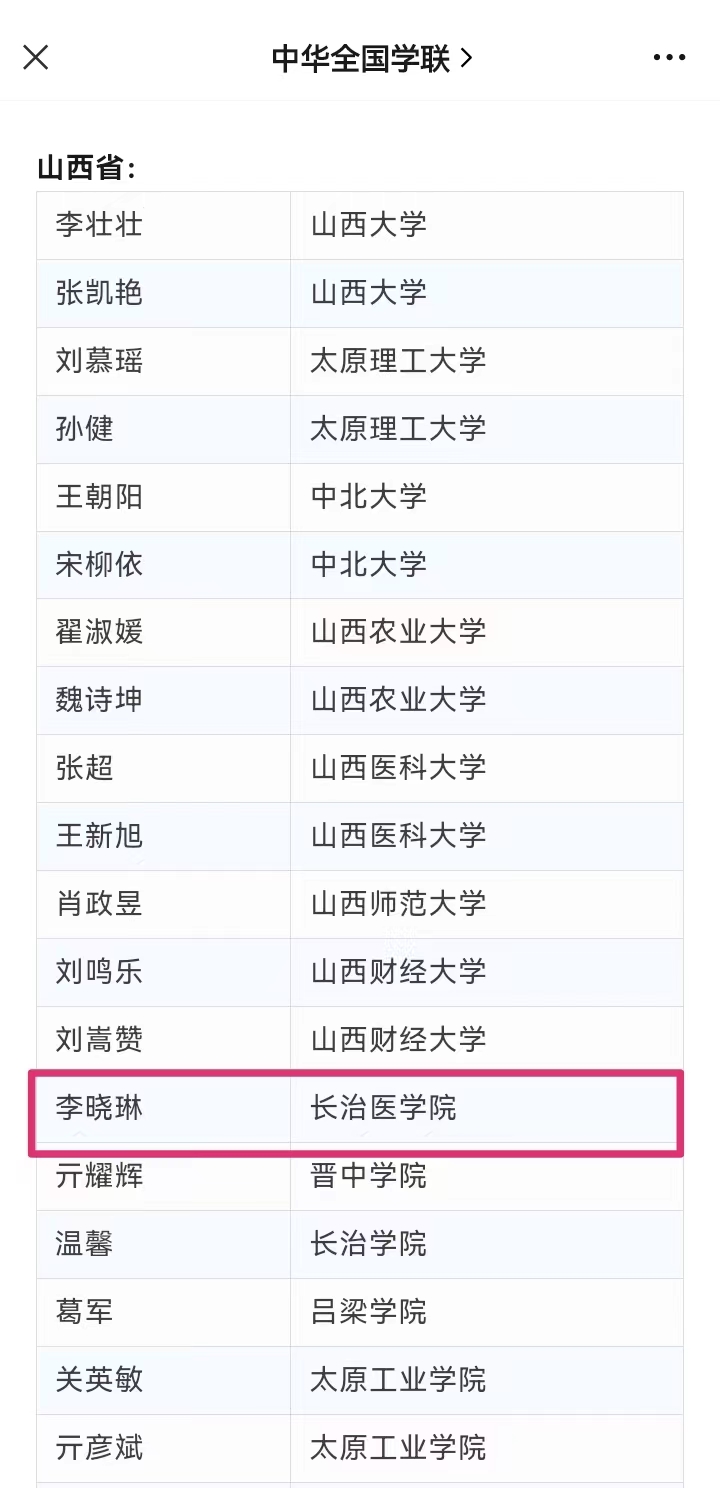 近日,中华全国学联公布了《2022年度“中国大学生自强之星”奖学金获得者名单》,经各高校推荐、省级初评、全国评审等环节,我校第一临床学院临床医学专业何穆1901班李晓琳同学斩获2022年度“中国大学生自强之星”奖学金。