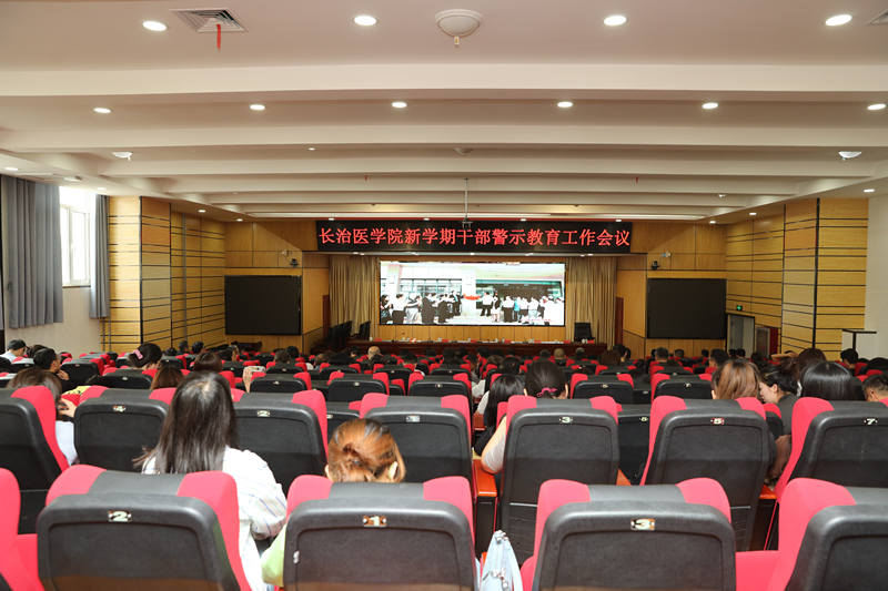 9月1日上午,我校在临床技能中心济世厅召开新学期干部警示教育大会,校领导班子成员、科级以上干部、全体辅导员、各教研室正(副)主任及附属医院领导班子成员参加会议。