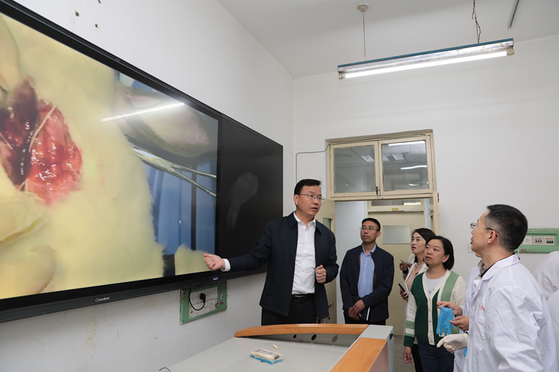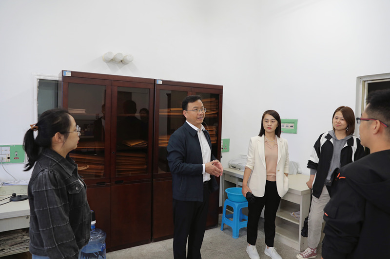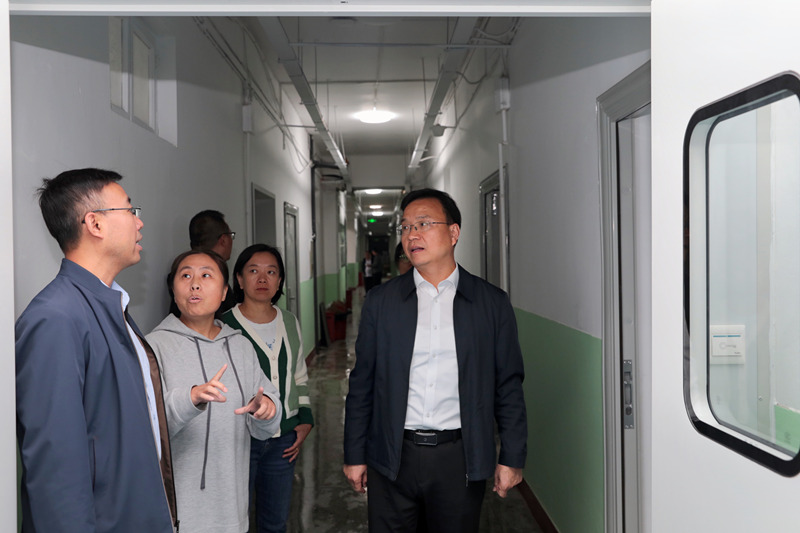 检查过程中,王金胜与在实验室开展科研工作的研究生亲切交谈,了解学生学业发展情况,叮嘱同学们规范操作、注意安全,鼓励大家充分利用学校各类实验平台资源,争取在科学研究上取得新进展、实现新突破。在公共卫生与预防医学系,王金胜与学校新进两名博士教师亲切交流,了解其工作生活适应情况,鼓励新进博士主动融入学校、全面了解学校,争取在长医再上新台阶、再创新佳绩,并要求相关部门要尽快落实引进人才配套政策,为其提供满意的教学科研环境。