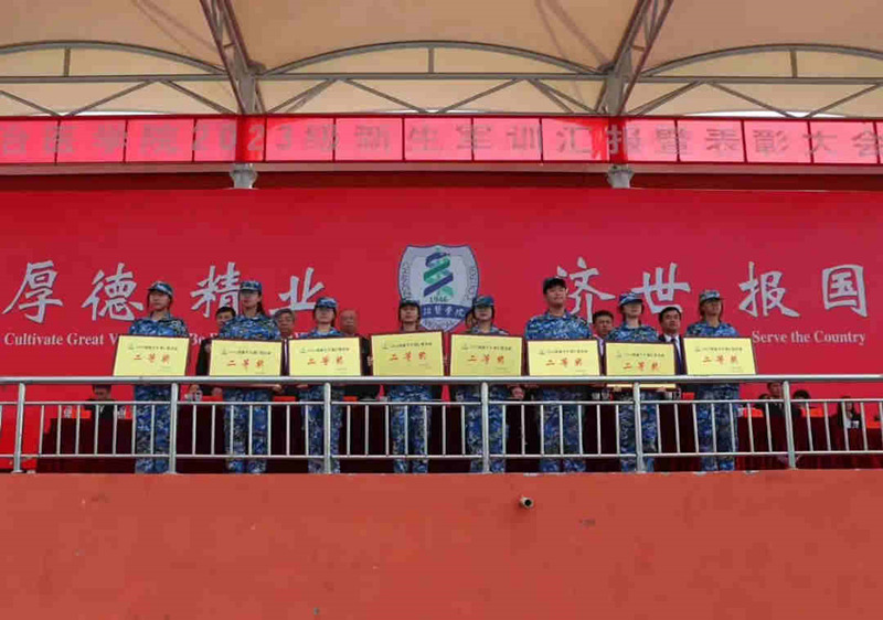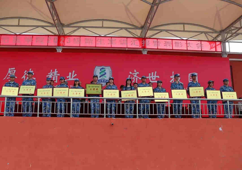 优秀连队代表和军训标兵依次登台领奖。