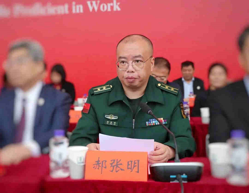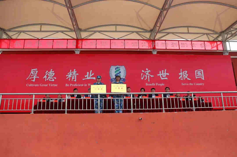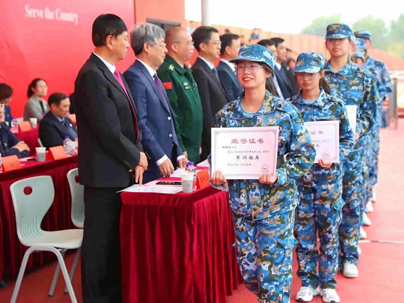 郝张明代表全体参训教官向学校领导和教职员工的大力支持表示衷心感谢,向圆满完成军训任务的同学们表示热烈的祝贺。他表示,全体师生面对时间紧、科目多、标准高、难度大等诸多困难,毫不退缩、刻苦训练、严格要求,圆满完成了军训任务。希望同学们把这次军训成果尽快转化为努力学习、刻苦钻研的强大精神动力,进一步提升思想认识,培育意志品质,增强身体素质,努力把自己培养成为一名德智体美劳全面发展、服务人民健康的优秀人才。