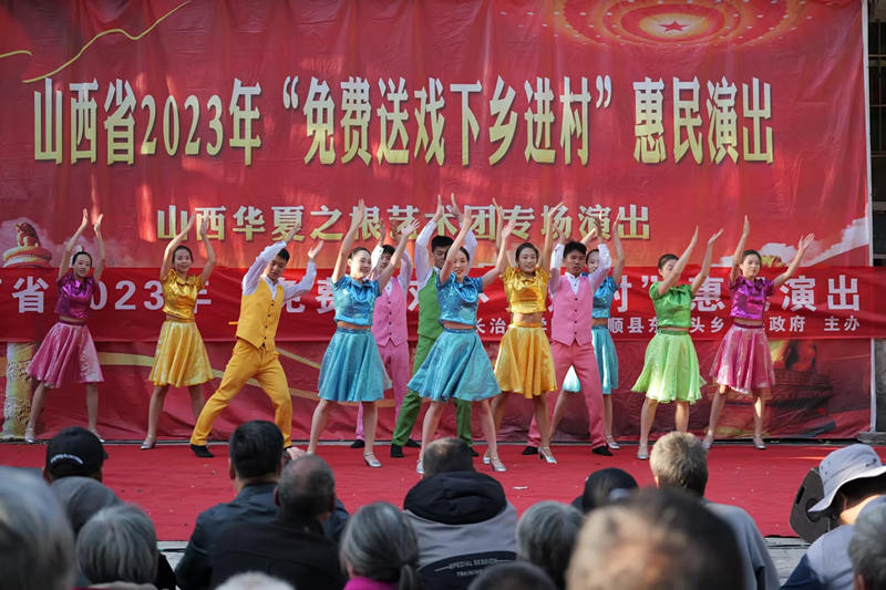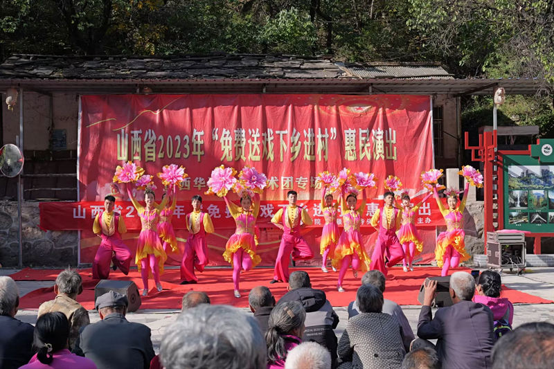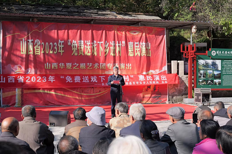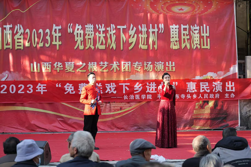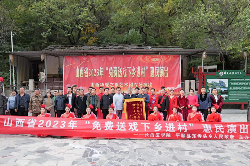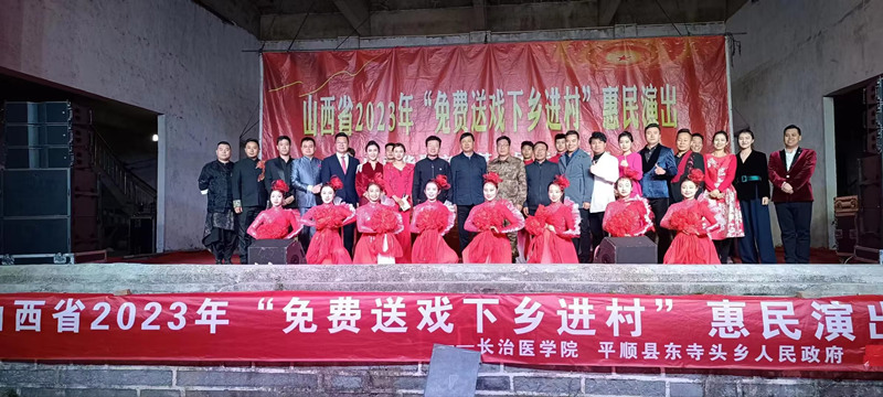 郑金平在演出现场致辞指出,山西华夏之根艺术团是省属八大文艺院团之一,多年来,该团始终坚持文艺为人民服务,不断深入基层、走进农村,开展各种形式的文化惠民演出,用优美的歌声、动人的舞姿,唱响了新时代主旋律,传递了满满的正能量。尤其该团创作推出的山西说唱剧《解放》,自2009年9月1日在国家大剧院首演以来,已在全国30个省区市演出上千场,曾四进国家大剧院、四次获得国家艺术基金立项资助,荣获了国家、省级多项荣誉,本次演出的演员大都来自《解放》说唱剧,他们的表演受到了农村基层群众的一致好评。我校在帮扶村开展精神文明建设,为乡村振兴注入文化活力,让乡亲们在家门口就能看到省级文化艺术团的表演,既丰富了大家的文化生活,又营造了良好的乡村文化氛围,也是推进乡村振兴战略,实现乡风文明的重要举措。激发乡村振兴新活力,增强农民群众生活幸福感,涵养丰富群众精神世界,也是落实习近平总书记关于文艺工作服务人民群众重要论述的有力体现。