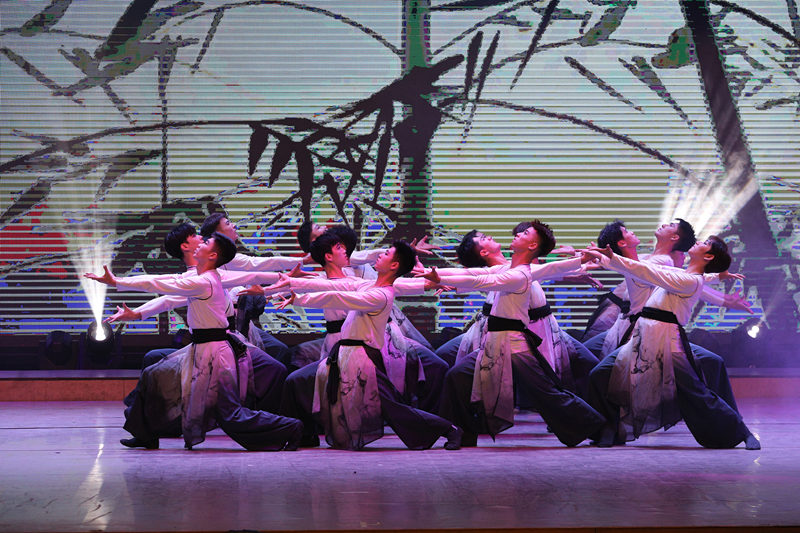由长治学院选送的舞蹈《国风墨韵》以中国传统的墨韵元素为主题,以水墨画、古典诗词、传统乐器为装饰,深刻展现出中华优秀传统文化的无限魅力。