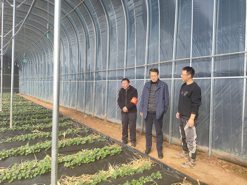 李华荣还到寺头村草莓种植示范棚内,就项目的运行情况进行了详细了解与调研。他认真听取了寺头村发展草莓种植产业实施过程的整体情况介绍,详细询问了草莓入冬以来的生长状况,成熟后市场预期销售情况。李华荣指出,在寺头村发展草莓种植,具有典型示范和带动作用,是村民把土地收益效益最大化的积极探索,也是我们工作队要关心的重要事情,帮助脱贫地区群众增收致富,就要鼓励村民产业先行。他要求工作队要随时关注村内村民各自产业发展动态,帮助他们解决问题,不断加大消费帮扶力度,帮助他们拓宽销售渠道,防止草莓及村内其他农副产品出现滞销现象。