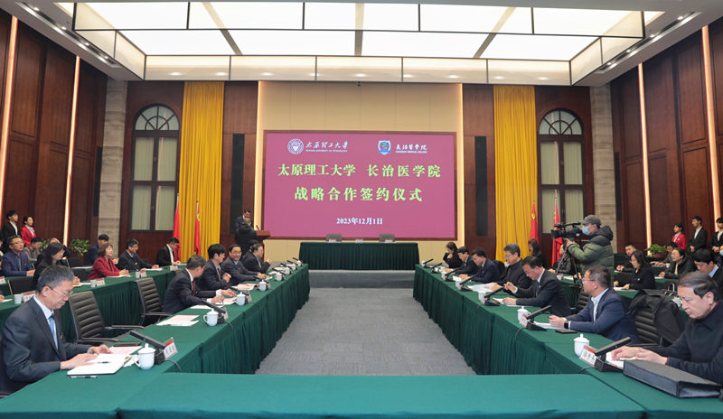 为深入贯彻新发展理念,充分发挥各自资源优势,医工融合助力区域经济社会实现高质量发展,12月1日,在太原理工大学明向校区鹏飞会堂,举行了长治医学院与太原理工大学战略合作框架协议签署仪式。我校党委书记李华荣,党委副书记、校长王金胜;太原理工大学党委书记郑强,党委副书记、副校长(主持行政工作)孙宏斌,党委副书记刘润祥,党委常委、纪委书记尉安英,党委常委、副校长吴斗庆、张献明、肖连团、任喜莹出席签署仪式。两校相关职能部门、合作单位的负责人及教师代表参加仪式。吴斗庆主持签署仪式。