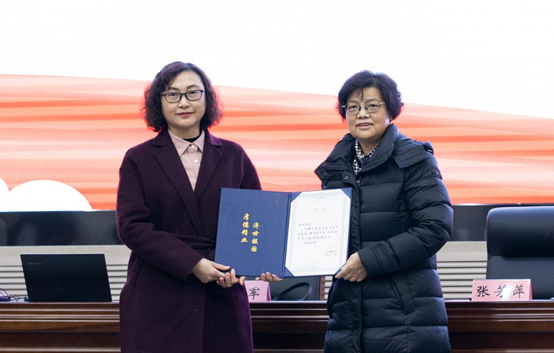 张芳萍对杨军教授的到来表示热烈欢迎和诚挚感谢,向杨军教授颁发了客座教授聘书。