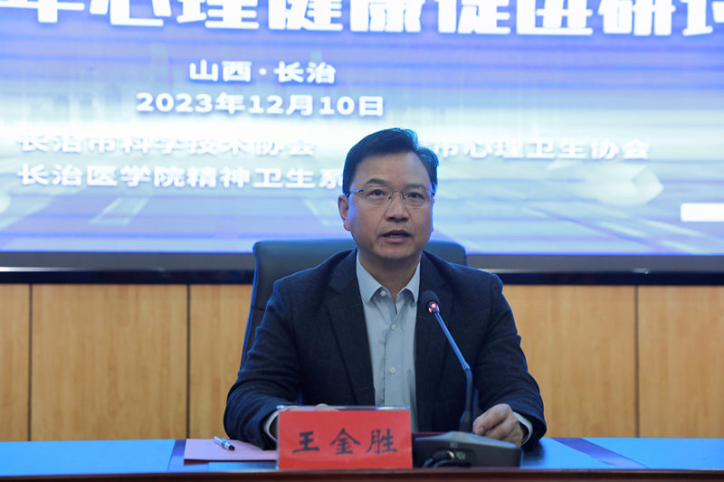 上午,在长治市心理卫生协会2023年学术年会暨儿童青少年心理健康促进研讨会开幕式上,我校党委副书记、校长王金胜教授致欢迎辞。他介绍了我校的红色历史、红色印记和发展历程,回顾了精神卫生系建系以来服务区域社会取得的成效。他希望,精神卫生系依托长治市心理卫生协会发挥专业人才力量,团结带领长治市心理学、医学、教育学、社会学界等科学工作者积极开展心理卫生教育、科学研究、学术交流,共同推动我市心理健康和精神卫生事业高质量发展。