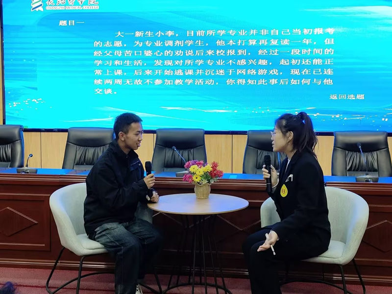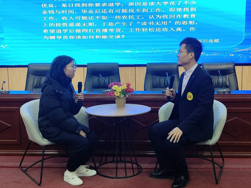 为深入学习贯彻习近平新时代中国特色社会主义思想和党的二十大精神,不断提升我校辅导员的理论水平、专业素养和业务能力,建设爱岗敬业、潜心育人的辅导员队伍,我校举办了第五届辅导员素质能力大赛,全校共62名专、兼职辅导员参加初赛,10名辅导员进入决赛。决赛于12月9日上午在济世厅举行,各院系(部)党总支书记、副书记、学工组长和全体辅导员到场观摩。