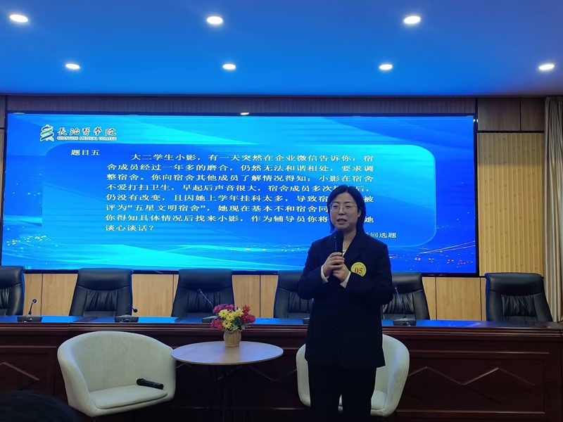 学工部部长裴振对决赛进行点评,他充分肯定了辅导员在理论素养和业务能力等方面取得的进步,指出了辅导员理论与实务方面存在的不足,并对谈心谈话和案例研讨两个环节的作答技巧给予了明确指导,提出了解决思路。