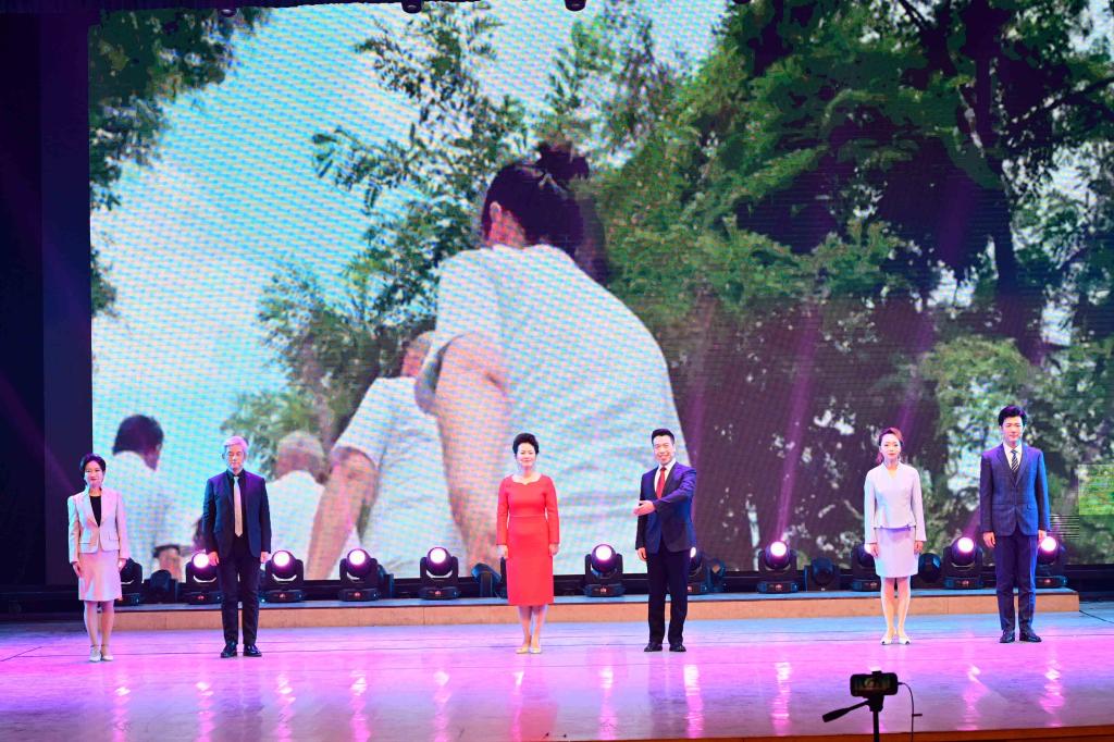 校党委书记李华荣,党委副书记、校长王金胜,党委副书记张芳萍,党委副书记郑金平,党委常委、纪委书记、监察专员段发明,党委常委、副校长尚进平,附属和平医院、附属和济医院、长治市人民医院、长治市第二人民医院、附属淮海医院、附属惠丰医院、附属清华医院领导班子成员,以及学校各二级院系、行政职能部门负责人,老干部代表、师生代表一同观看了演出。