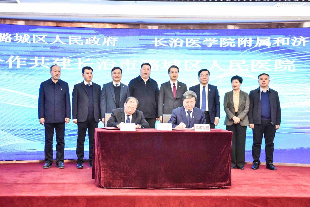 最后,潞城区委副书记、区长柴哲与附属和济医院党委副书记、院长郝少峰代表双方签订《合作共建长治市潞城区人民医院协议》。