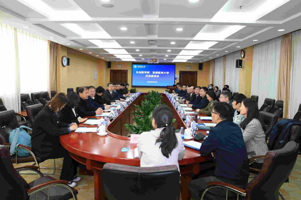 为推进《首都医科大学 长治医学院 教育对口合作框架协议书》落地落实,3月18日至19日,校党委书记李华荣,党委副书记、校长王金胜,党委常委、副校长来丽娜和相关职能部门负责人一行赴首都医科大学洽谈对口合作。首都医科大学党委书记呼文亮,党委副书记孙力光,党委常委、副校长张晨出席对口合作洽谈会,相关职能部处负责人参加。