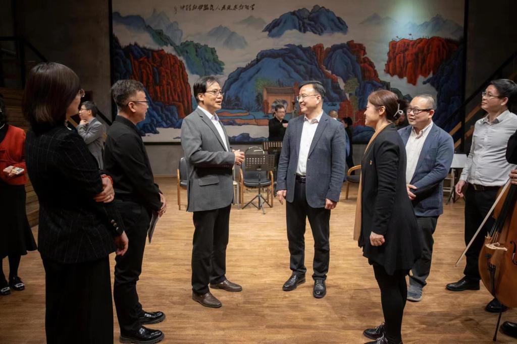 29日晚,王新华一行在王金胜的陪同下,于我校音乐治疗基地感受了一场以体感音乐治疗体验为核心的“音相随、乐身心”音乐治疗主题室内乐专场音乐会。