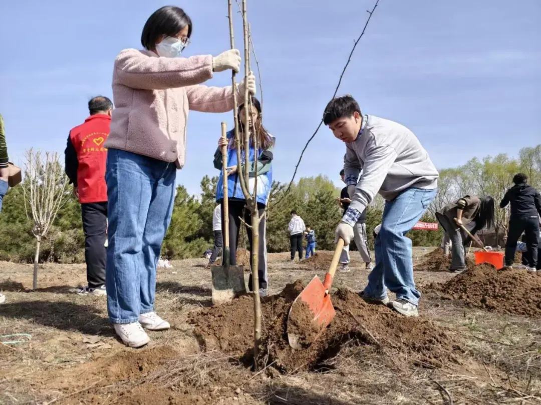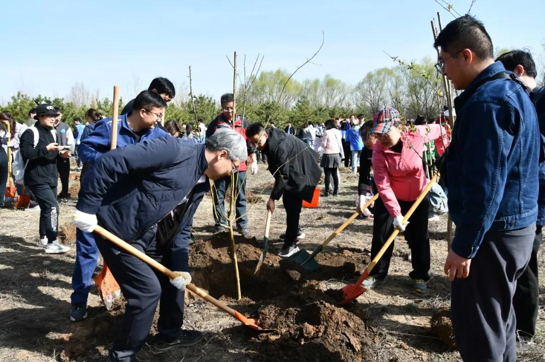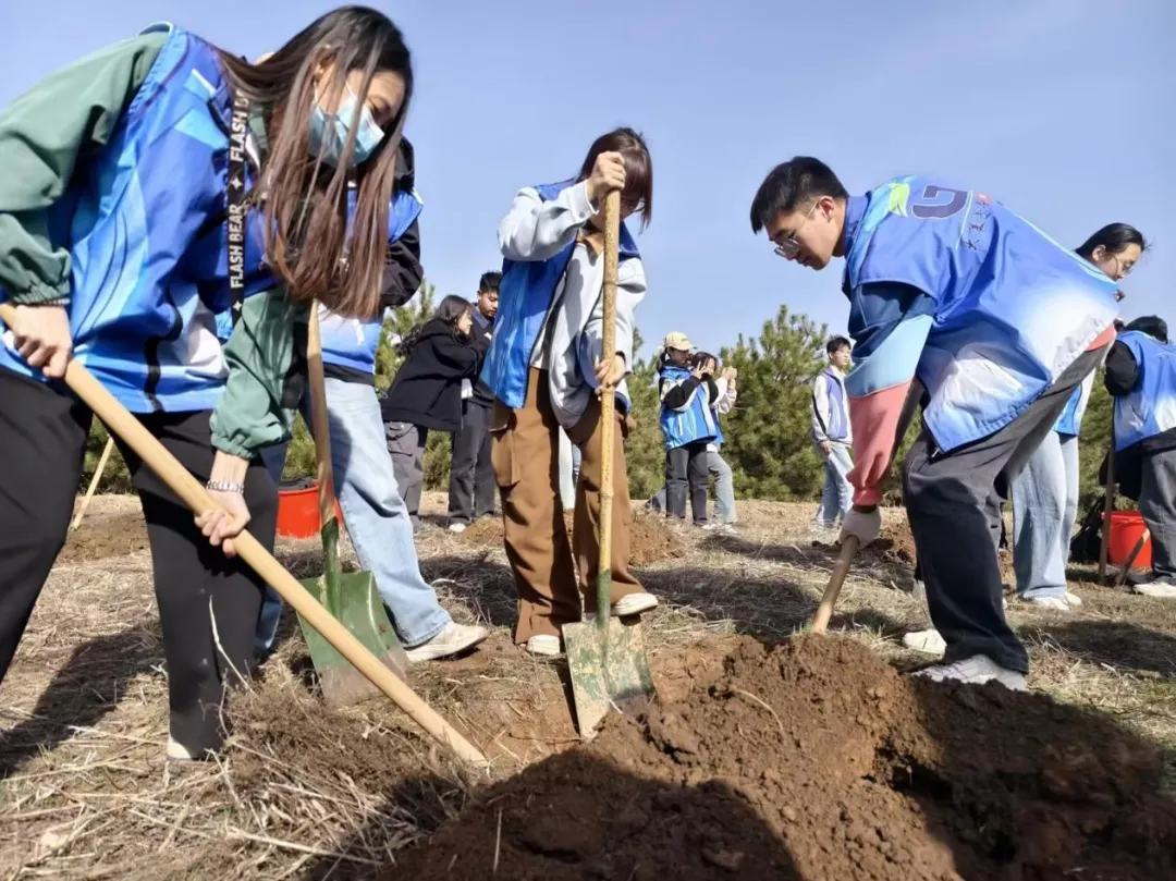 活动中,教师党员带头挥锹挖土、为树木安家,青年学生精神饱满、积极参与,场地清理、挖掘树穴、扶苗培土……各环节衔接有序,呈现出一派热火朝天的劳动景象。