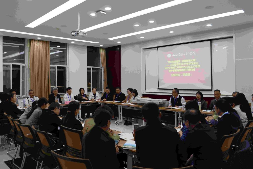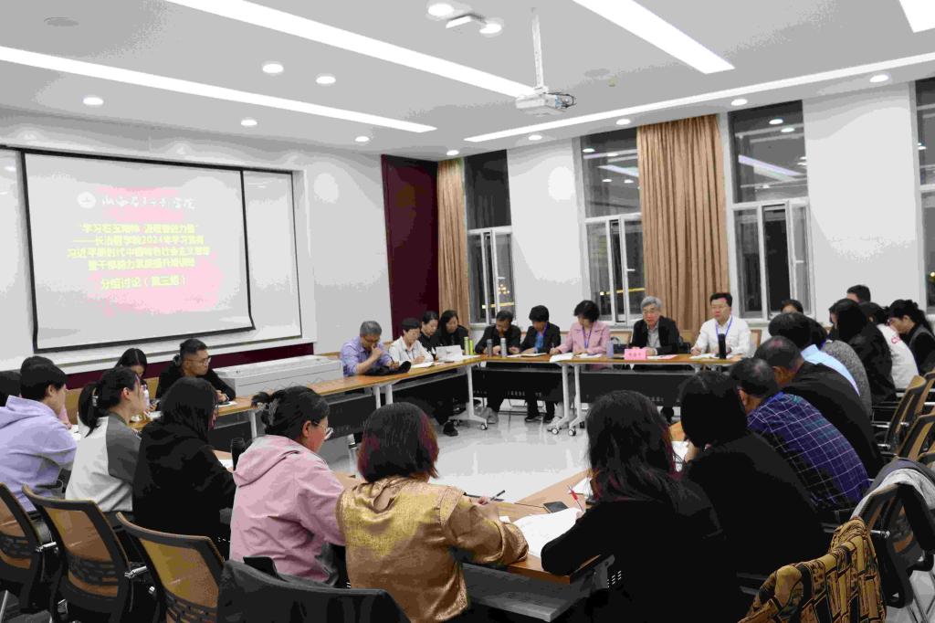 培训期间,学员们围绕学习内容,紧密结合工作实际,进行分组交流研讨,郑金平深入各组参加讨论。大家纷纷表示,要在本职岗位上大力弘扬右玉精神,努力将学习成果转化为推进学校“2030专项计划”的实际行动。