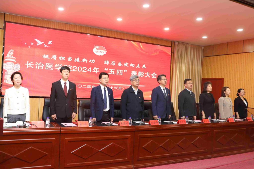 校党委副书记、校长王金胜宣读《关于表彰长治医学院2023—2024学年共青团先进集体和优秀个人的决定》,分别授予64个先进集体“五四红旗团委”“五四红旗团支部”“优秀青年志愿服务集体”称号;对624名优秀个人分别授予“优秀共青团员”“优秀共青团员标兵(十佳大学生)”“优秀共青团干部”“优秀团务工作者”“优秀青年志愿者”称号。