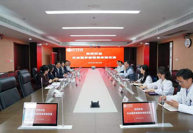 该院党委书记徐博对王金胜一行表示热烈欢迎,并介绍了医院的历史沿革、整体发展、学科建设、平台建设等概况;副院长赵经洲介绍了该院“十四五”规划的四个重点研究方向及在核特色方面取得的成绩;王金胜介绍了我校的历史背景、学院整体发展。双方就重点学科建设、科研平台建设、管理机制、人才培养和学生管理等方面进行了深入交流。
