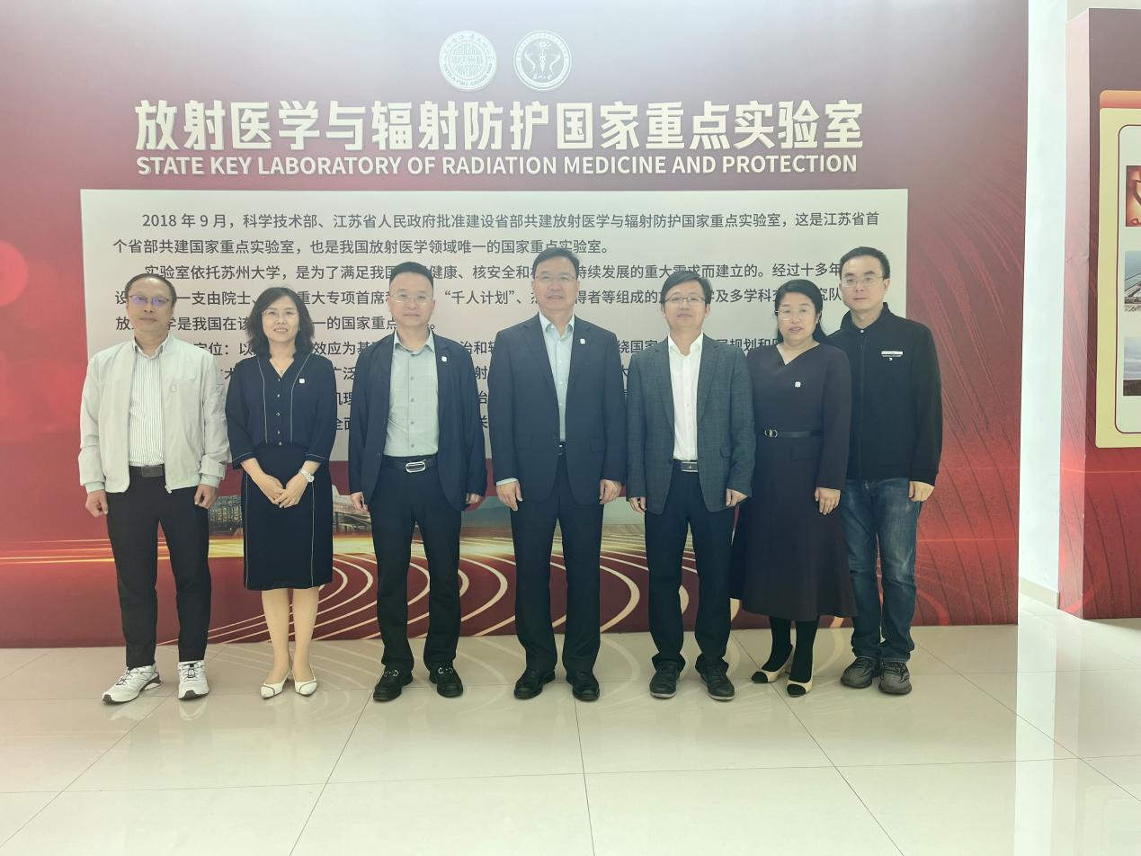 4月29日,校党委副书记、校长王金胜带队赴苏州大学苏州医学院放射医学与防护学院、放射医学与辐射防护国家重点实验室、苏州大学附属第二医院考察交流。
