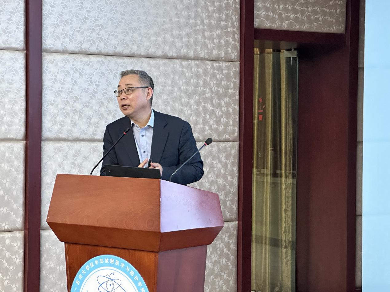 曹建平介绍了放射医学与防护学院及国家重点实验室的发展历程、主要研究方向和成果,以及今后的发展计划。