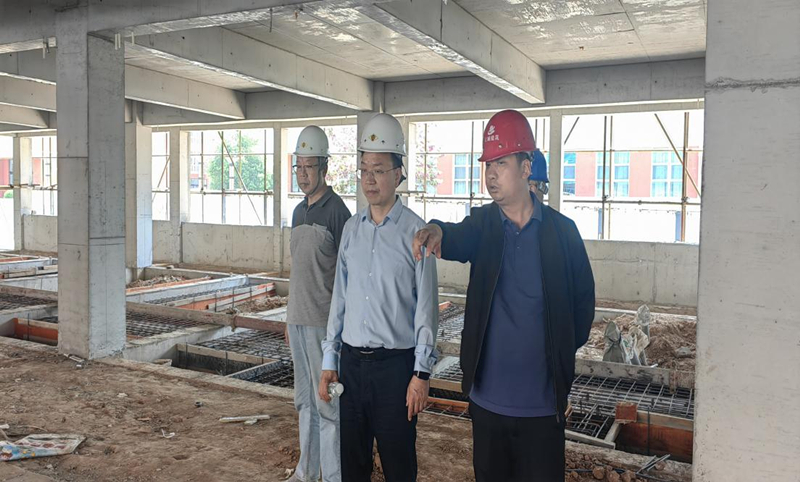 在五龙校区新学生宿舍楼施工现场,王金胜要求相关部门和责任人要在保证工程质量和安全的基础上,加快进度确保2024级新生开学入住。