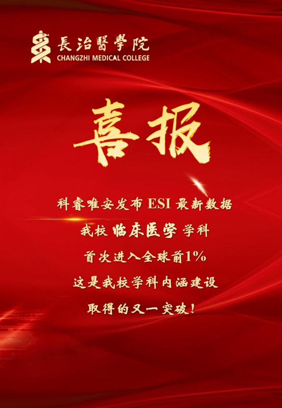 5月9日,根据ESI公布的最新统计数据,我校“临床医学”学科首次晋升全球ESI前1%,实现了学校自建校以来学科建设的重大突破,这也是继山西医科大学之后,山西省第二所拥有ESI临床医学全球前1%学科的高校,是我校学科内涵建设取得的又一突破。