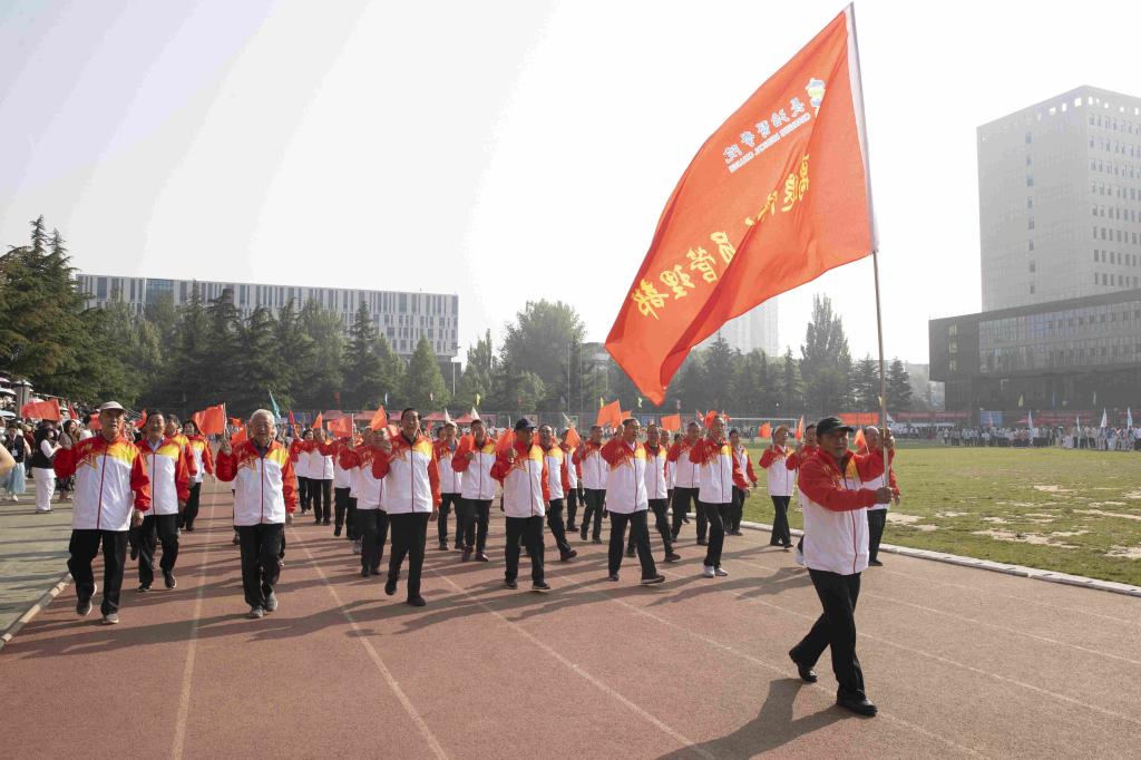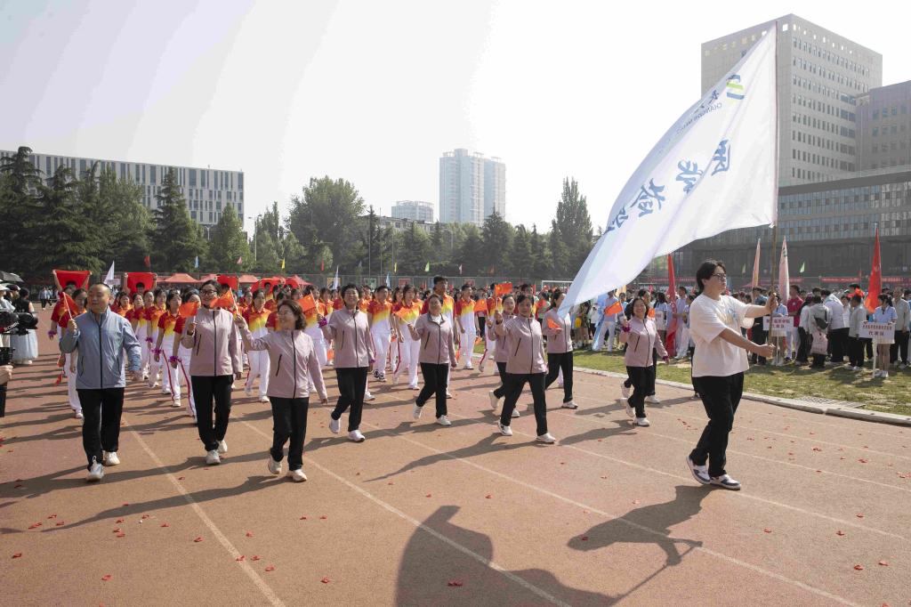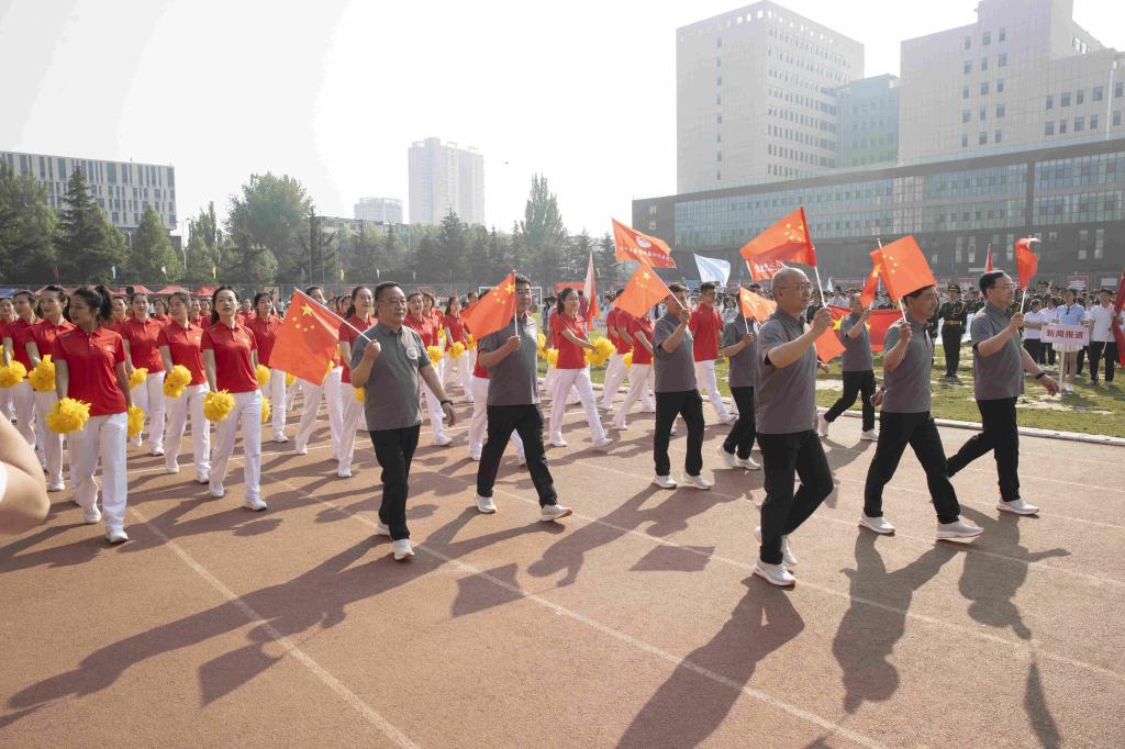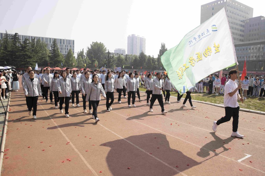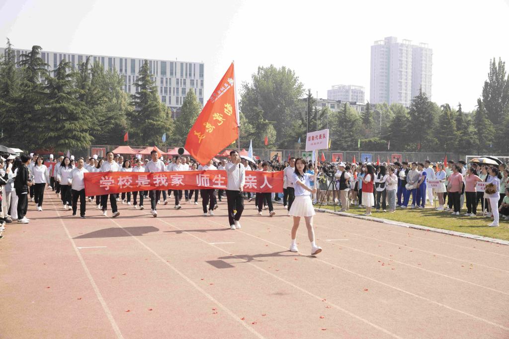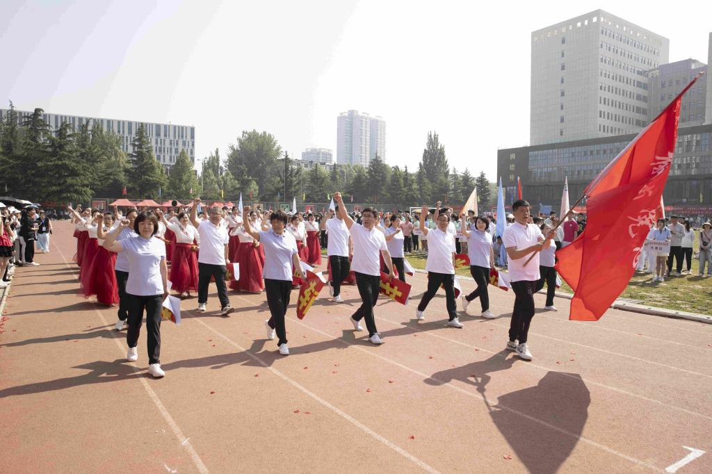 步履铿锵,红旗飘扬。伴随着激昂的音乐,国旗护卫队、红旗队、裁判员队、新闻报道队、离退休人员代表队、各附属医院代表队、各院系(部)代表队、机关代表队、后勤代表队、公共教学部代表队、教辅代表队等30余支代表队依次入场。他们列队整齐、步伐坚定,精神抖擞、意气风发地走过主席台,用激情嘹亮的口号和独具创意的表演展现出长医人乘风破浪的坚定信心。
