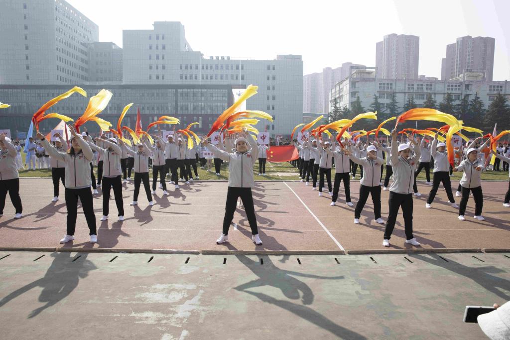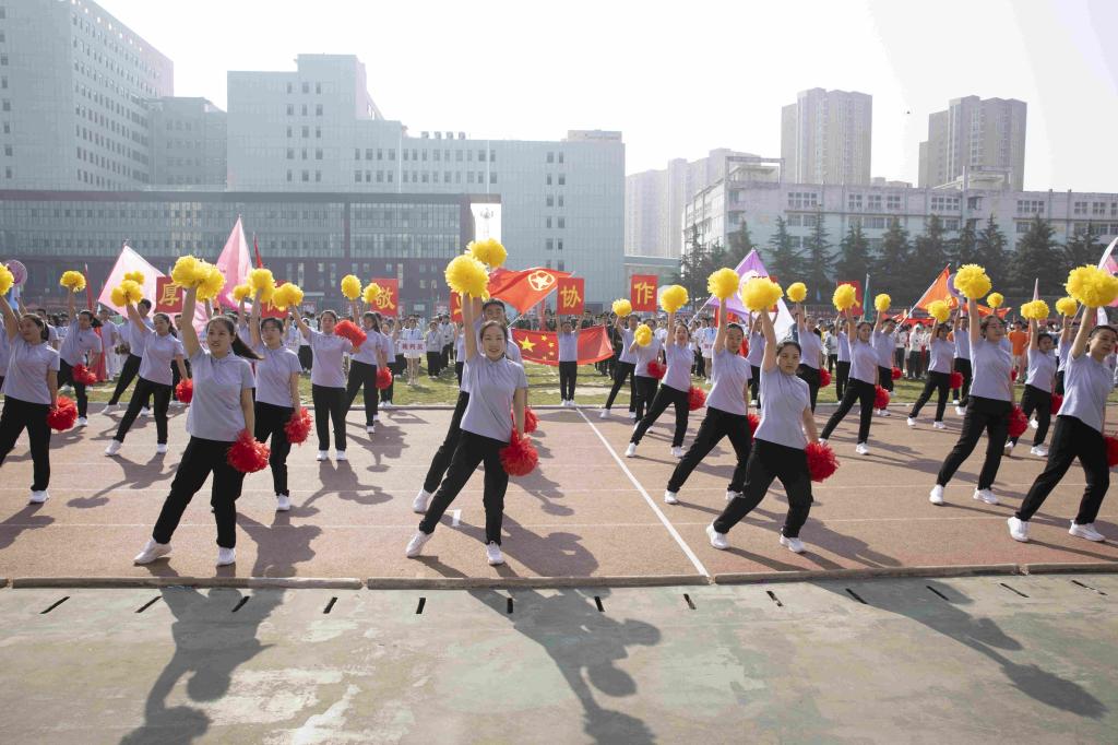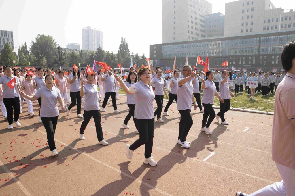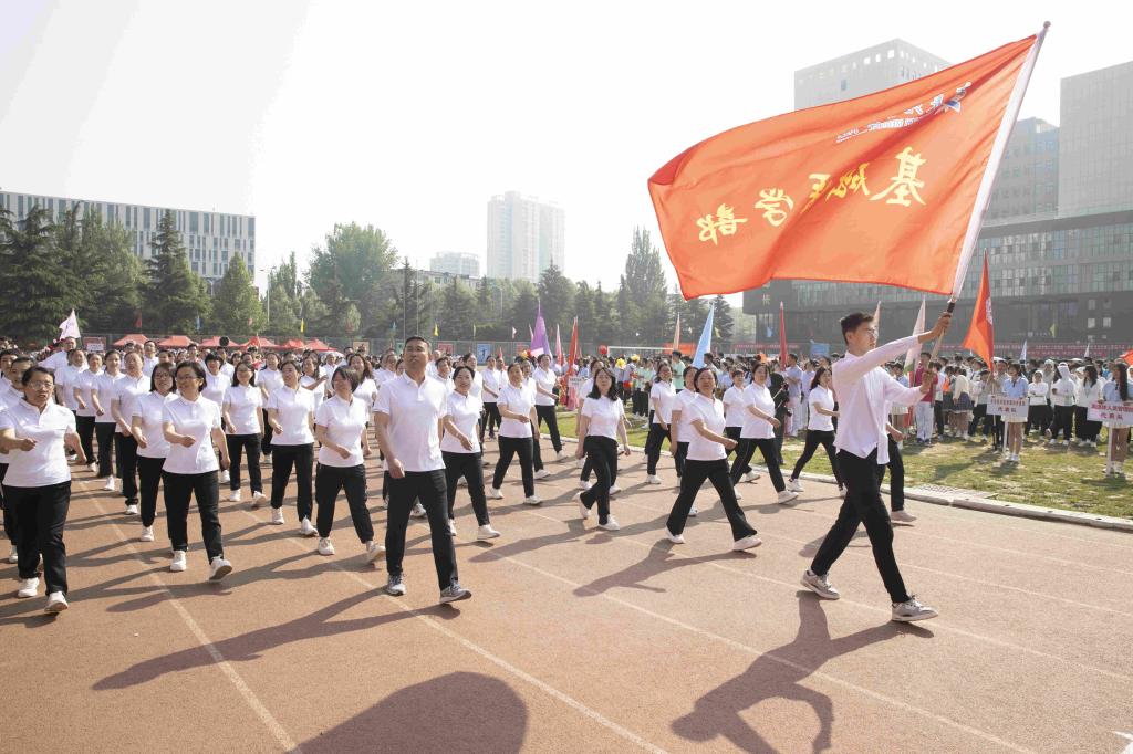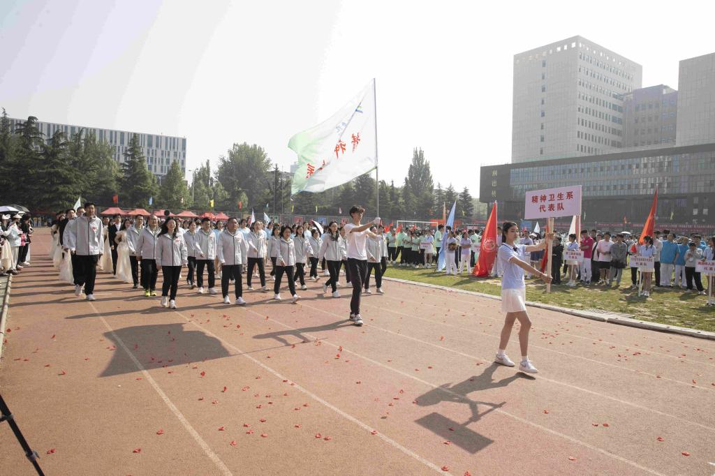 口腔医学系、医学影像学系、学工部、公共体育教学部、麻醉学系、精神卫生系、人文艺术传媒系、健康管理系进行了大型团体操表演。