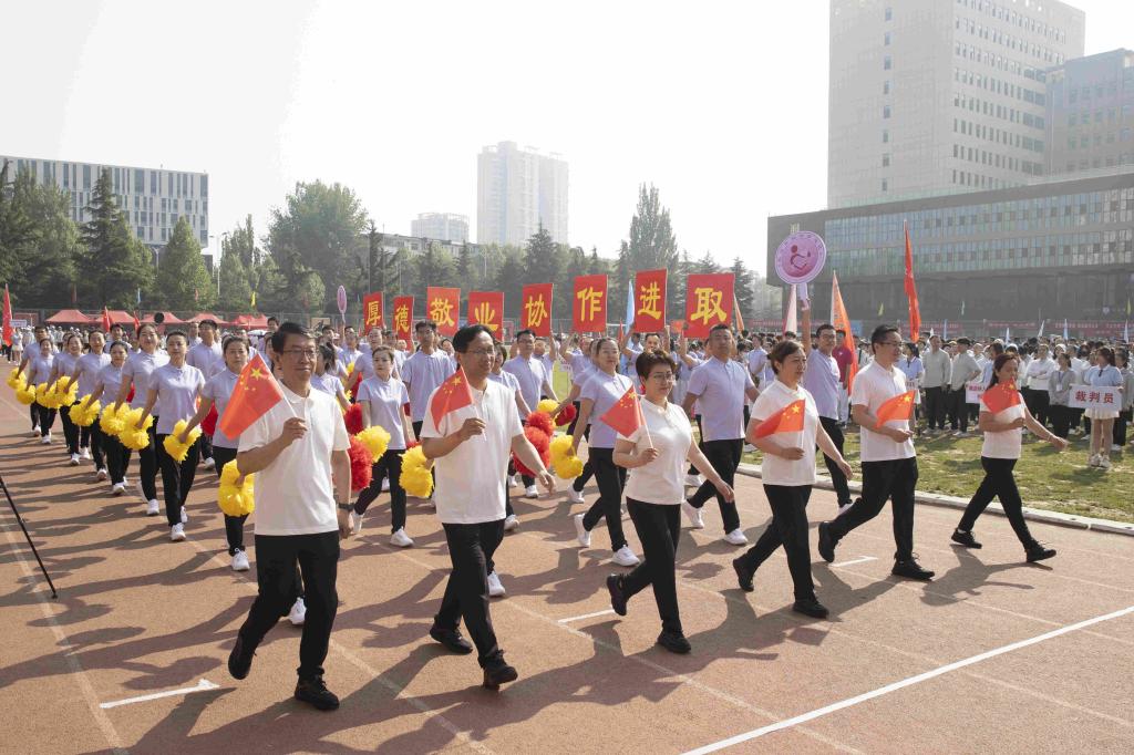 党委副书记、校长王金胜致开幕词,向出席开幕式的各位领导、来宾表示热烈欢迎,向筹备这次盛会的全体工作人员表示衷心感谢,向参加盛会的全体运动员、裁判员、教练员表示亲切问候。他指出,体育承载着国家强盛、民族振兴的梦想,坚持“五育”并举,培养德智体美劳全面发展的社会主义建设者和接班人,是社会主义大学的根本任务,体育不仅是人才培养的重要内容和环节,更是人全面发展的前提与基础。“完善人格、首在体育”,他寄语运动员们,要勇于竞争、敢于胜利,尊重规则、遵守规则,重在平常、注重过程,端正心态、正视输赢,把更高、更快、更强、更团结的体育精神转化为刻苦学习、砥砺成才、建设百年长医的强大动力,在实现中国式现代化新征程上高歌猛进、奋力冲刺。