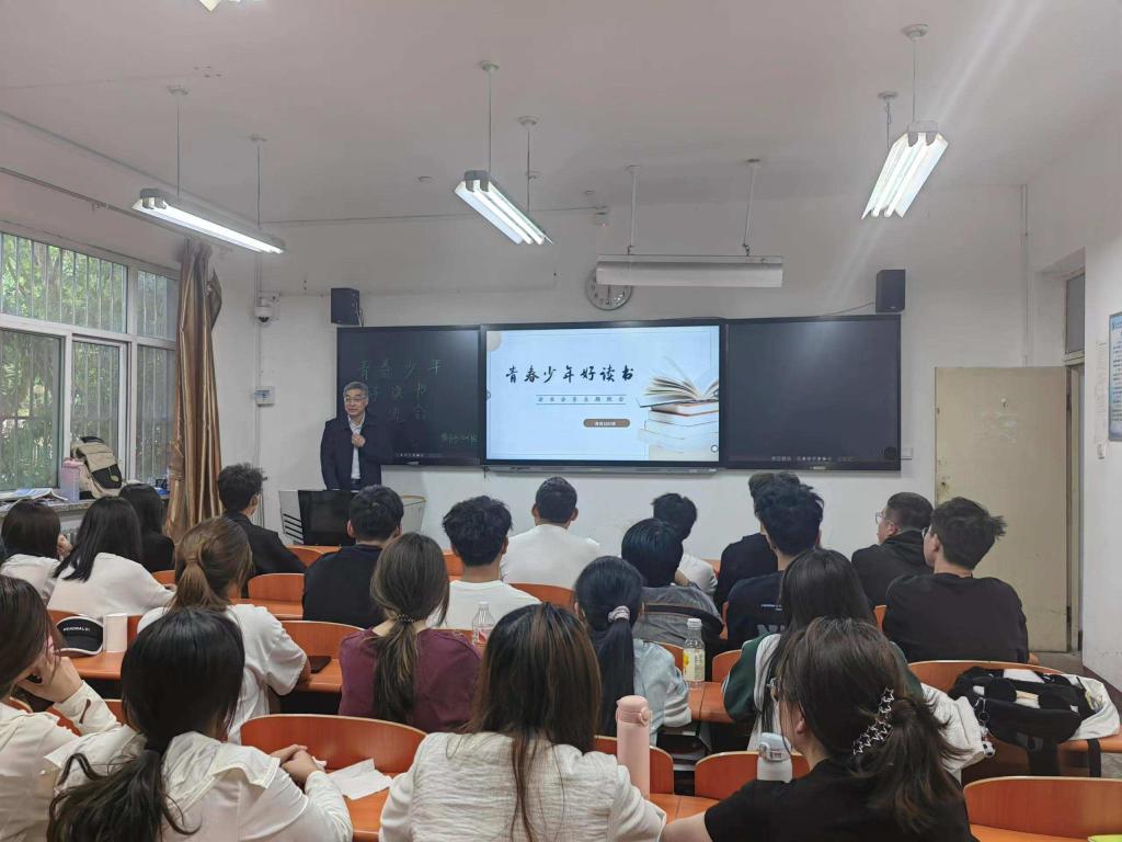 郑金平充分肯定了本次读书分享主题班会活动的意义,从“读书目的”“读什么书”“如何读书”等方面与同学们作了深入交流。他指出,同学们要通过读书不断增长知识、开拓视野,丰富内心世界,提高综合能力。他勉励同学们要博览群书、积极进取,把读书变成习惯,变成终生爱好,读万卷书、行万里路,在书中体验生活、感受温暖,通过读书更多地了解世界、洞察世界,做到学以致用、知行合一。