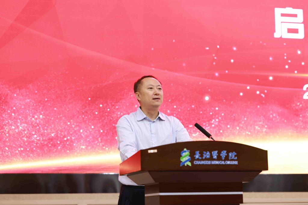 我校领导班子成员、山西光益生科技有限公司干部职工代表,学校中层领导干部、各附属医院领导班子成员,紫外LED无创光疗项目组成员以及师生代表参加仪式。