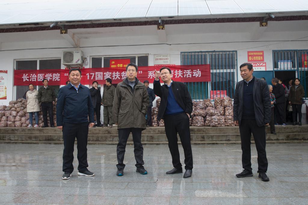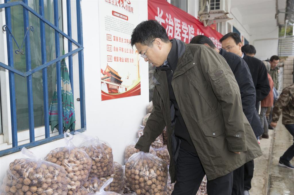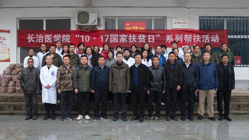带着浓浓的爱意和对乡亲的牵挂,10月16日,学校党委书记李华荣率领结队帮扶干部、附属和平医院医学专家,满载着全校师生为村民购买和捐赠的生活用品,在蒙蒙细雨中,一早赶赴我校帮扶两村——焦底村和常驼村,开展2019年“10.17全国扶贫日”系列帮扶活动。学校党委常委、副校长王金胜,党委常委、组织部部长李永红,东寺头乡党委书记刘春旺、乡长张宏波一同开展帮扶调研活动。