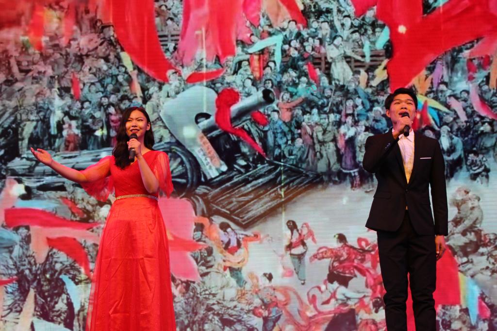 开场表演《触摸天空》拉开了晚会的序幕。学社联选送的歌曲《只要平凡》,如山间细流潺潺而出,道出了生而平凡的人生感悟;蓝色梦幻乐团选送的歌曲《晴天》勾起了大家的青春美好回忆;跳跳堂街舞俱乐部选送的舞蹈《轻舞飞扬》活力四射,引爆全场;语言艺术协会选送的手语舞《明天,你好》用无声的语言深刻传递着普通人对未来的无限希冀与期望,令人如痴如醉;交谊舞协会选送的拉丁舞《Danceholic》热情似火,动感艳丽;梦翔书画协会、武术协会、云水襟怀汉服社选送的舞蹈《谦墨君子》将中国武术表演与传统文化相结合,静若伏虎、动若飞龙,松弛间无不彰显着中华民族优秀传统文化的独特魅力;诗朗诵《青春中国》慷慨激昂、抑扬顿挫,生动地再现了中华民族的艰辛奋斗史,字里行间流露出长医学子对祖国深情的热爱。晚会在歌曲《我和我的祖国》中圆满落幕。
