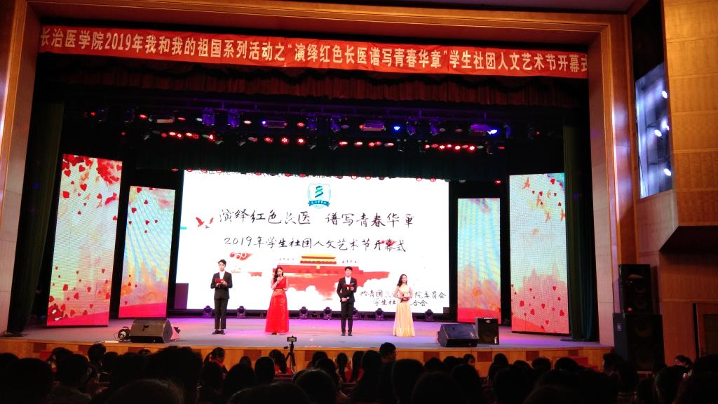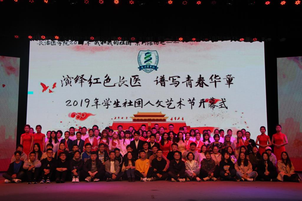 红色长医芳菲始,青春年华正当时。为丰富学生校园文化生活,展现学生青春风采,弘扬长医精神,10月19日晚,“我和我的祖国”系列活动之“演绎红色长医 谱写青春年华”学生社团人文艺术节开幕式在我校科学会堂成功举办。