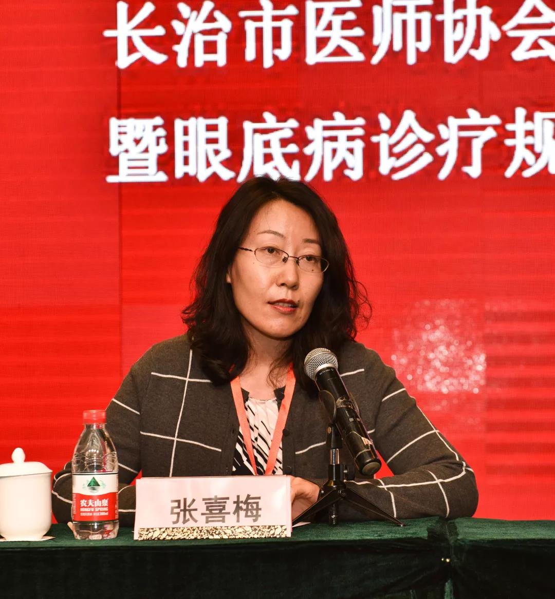 图为:山西省医学会眼科分会眼底病学组组长、山西省眼科医院张喜梅教授致辞