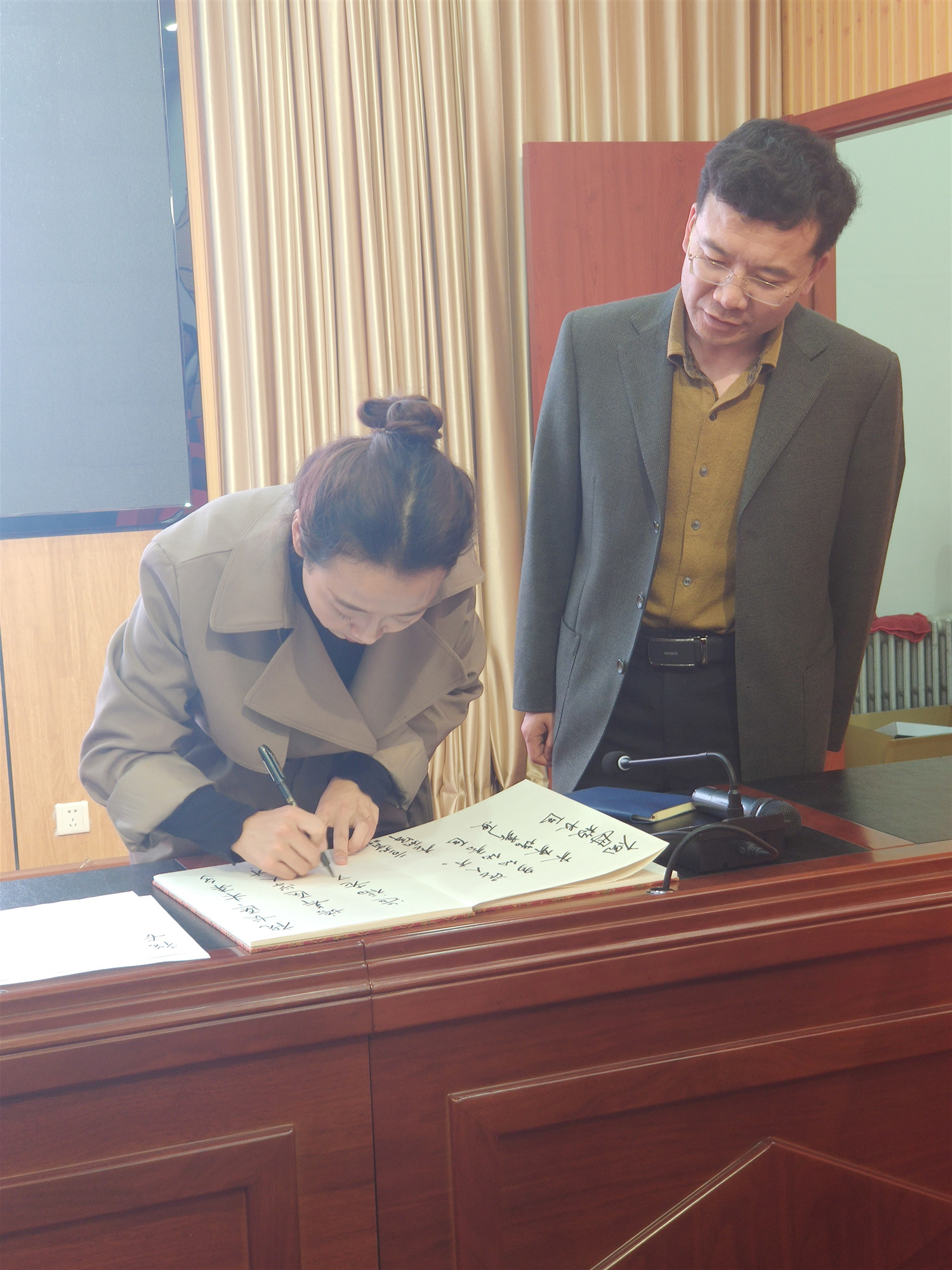 讲座结束后,王黎刚代表学校向杨超君赠送了学校纪念品和校徽,并邀请杨超君在校友题词簿上签名题词,留下自己对母校的祝福。