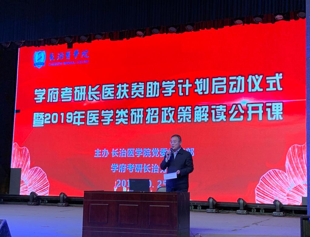 为深化教育扶贫,更好地服务我校学生的成长发展需求,提升学校的考研通过率,学工部与专业从事考研辅导的学府考研长治分校合作,共同实施了学府考研长医扶贫助学计划。