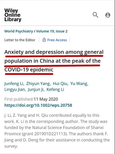5月11日,我校附属和平医院放射科主任李俊峰以第一作者在World Psychiatry 杂志在线发表论文“Anxiety and depression among general population in China at the peak of the COVID‐19 epidemic”,该杂志属中国科学院分区1区期刊,影响因子高达34.024分。这是和平医院目前发表的最高影响因子的SCI期刊论文,也是李俊峰团队多年来在神经精神疾病影像组学研究方面取得的重要成果。