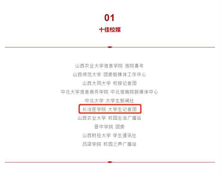 【长医喜讯】我校在2019-2020年度山西“十佳校园媒体”评选中获佳绩