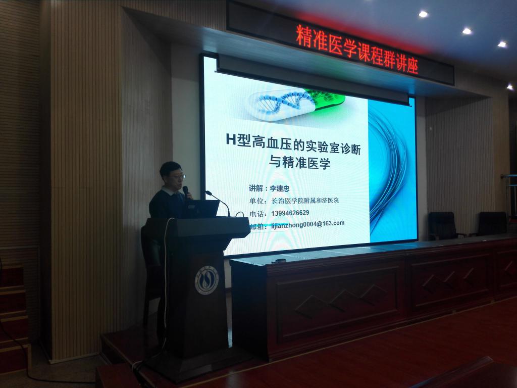 11月2日,山西省老年医学学会、山西医科大学和长治医学院联合举办了“精准医学课程群-药物基因组学”讲座。本次讲座在山西医科大学基础医学院报告厅举行,长治医学院附属和济医院主任技师李建忠主持并参讲。来自全省各级医院代表、山西医科大学教职工、各专业在校本科生和研究生代表近200人参会。