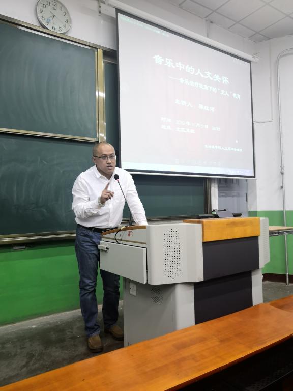 栗红河从讲堂海报的设计谈起,向大家述说了他对音乐治疗专业“第二次创业”的自信与期待。他分享了自己对音乐治疗的见解,并以自身为例引领大家从文化、时代、环境等多个方面探寻音乐中的人文关怀。最后,他希望同学们能充分理解音乐的内涵,共同参与到音乐治疗专业“第二次创业”当中。